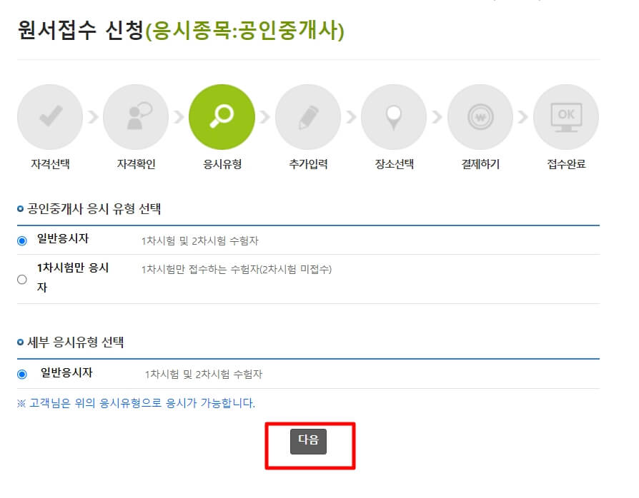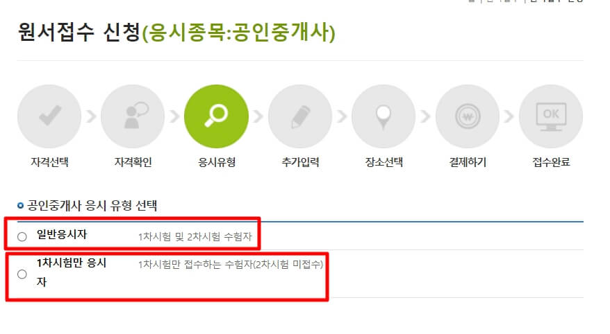10. 응시 유형이 나옵니다. 1차, 2차 시험 수험자는 일반 응시자에 체크하시고, 2차 시험 미접수하시는 분은 1차 시험만 응시자에 체크하시면 됩니다.