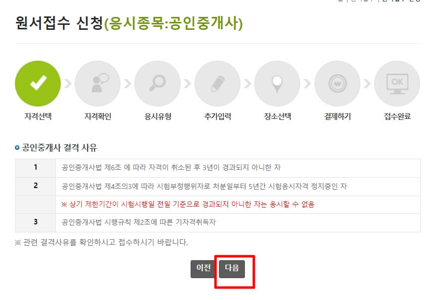 8. 공인중개사 결격사유를 확인하시고 다음을 누릅니다.