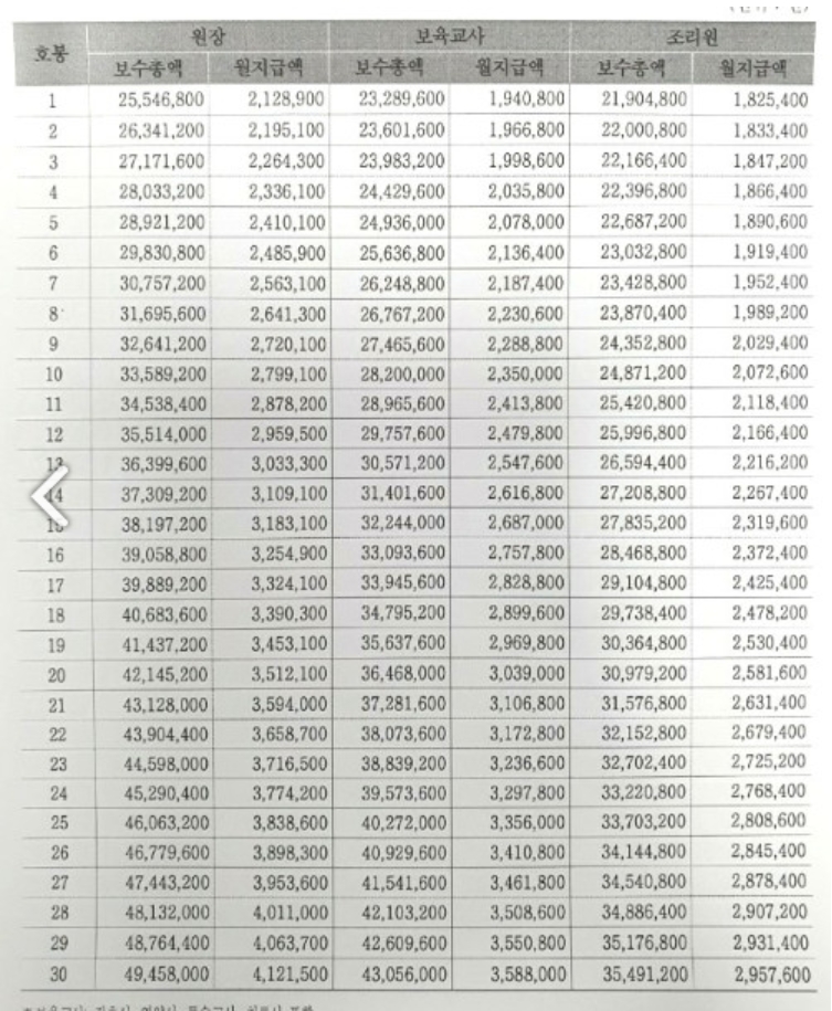 ○ 보육교사 호봉표는 다음과 같습니다.