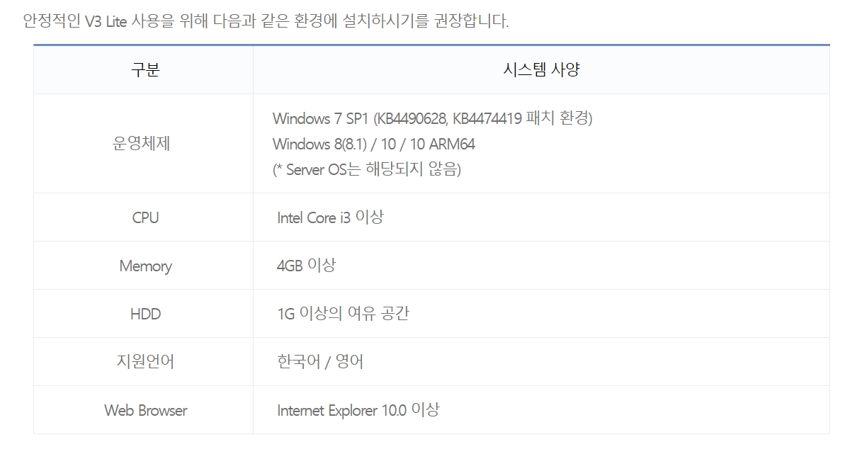 □ V3 라이트 무료 백신 시스템 권장 사양