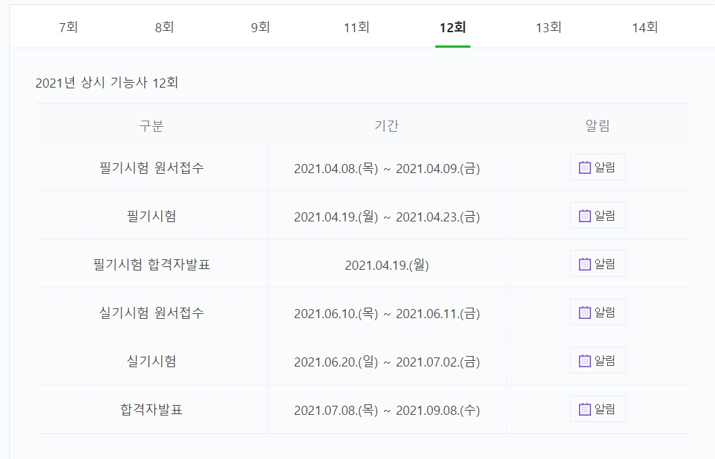 21년 4월 굴살기운전기능사 상시 12회, 13회 시험일정은 다음과 같습니다.