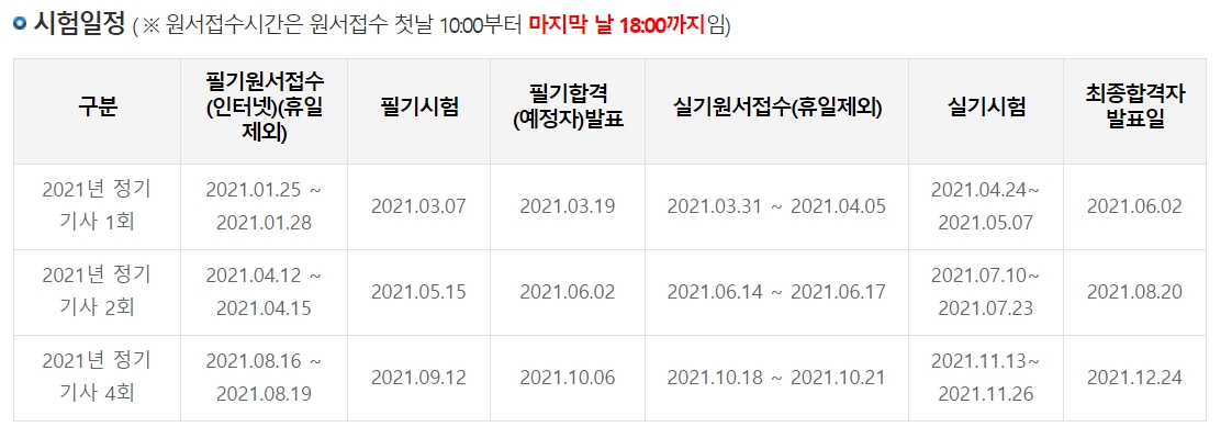 21년 건설안전기사 정기기사 1회, 2회, 3회 시험일정은 다음과 같습니다.