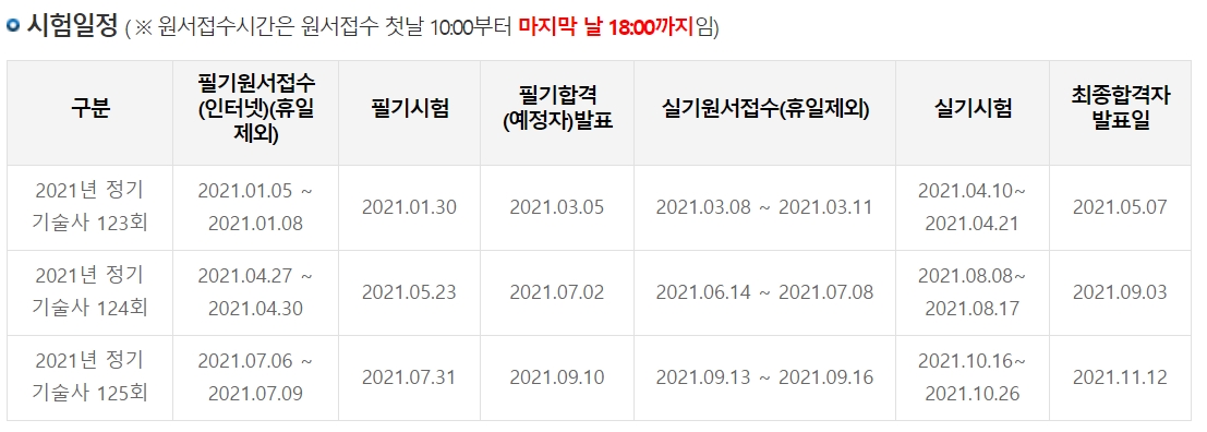 ○ 건축시공기술사 21년 정기기술사 123회, 124회, 124회 시험일정은 다음과 같습니다.